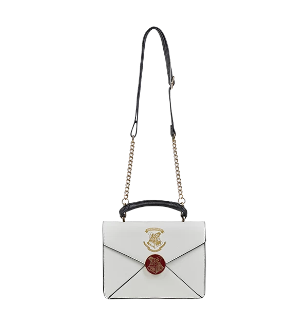 Secure your very own place at Hogwarts with this Acceptance Letter bag. The cream-coloured bag is in an envelope design and features the Hogwarts school crest in a metallic gold print. The bag is complete with fully adjustable straps and a padded black handle which are perfect for a comfortable fit.