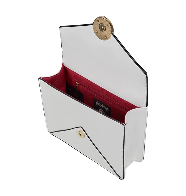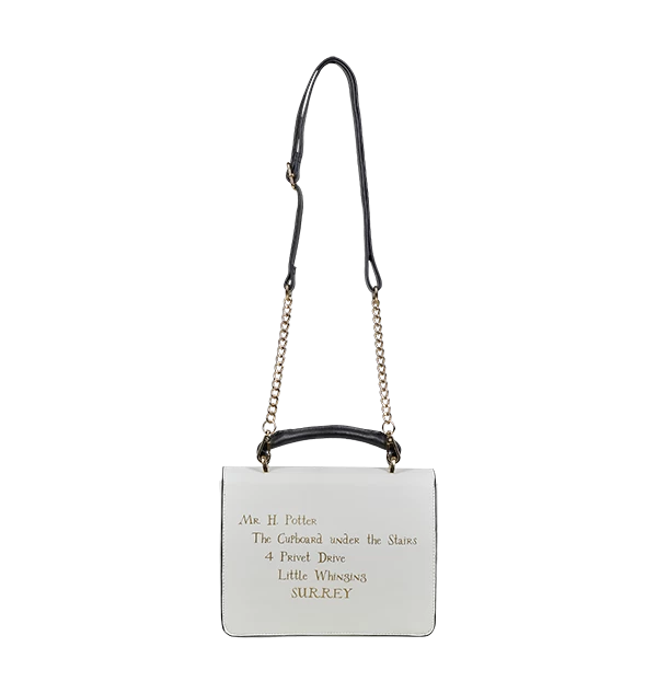 A metal burgundy clasp is fitted on the front of the bag which features a design of the Hogwarts crest. Harry Potter’s address is printed in gold lettering on the reverse, ‘Mr. H Potter, The Cupboard under the Stairs, 4 Privet Drive, Little Winging, SURREY’ which adds to the envelope design of the bag. Add this Harry Potter Letter Bag to your accessories collection today!