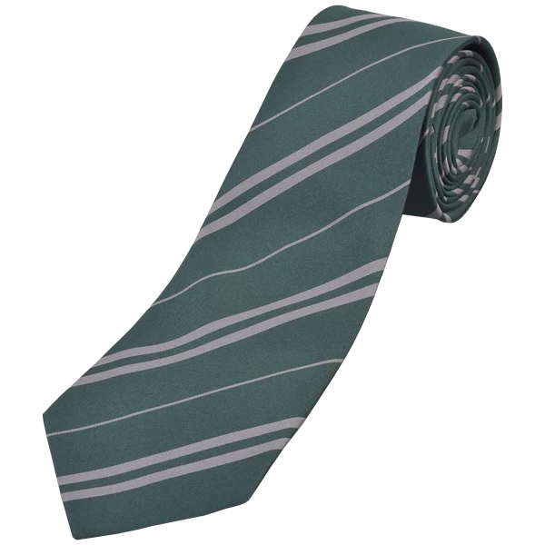Made from 100% Silk, the tie features a green and silver design in diagonal bands just like those worn by Hogwarts students in Harry Potter and the Prisoner of Azkaban.