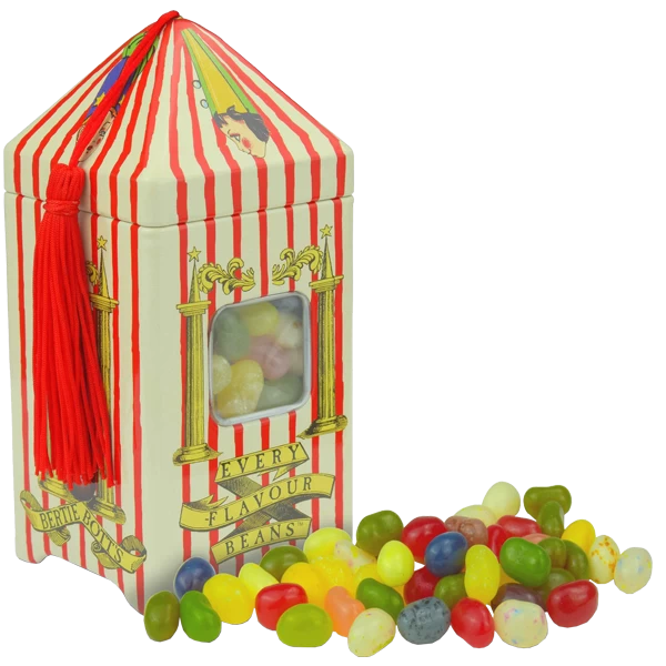 Take home these tasty gourmet jellybeans which come in up to 20 flavours. The flavours range from delicious to disgusting and are presented in the authentic Bertie Bott’s Every Flavour Beans tin. Flavours include marshmallow, tutti-frutti, grass, soap, and earwax. Packaged in a decorated box based on the packaging created for the Harry Potter film series and complete with bean flavour menu. Beans total approximately 170g.