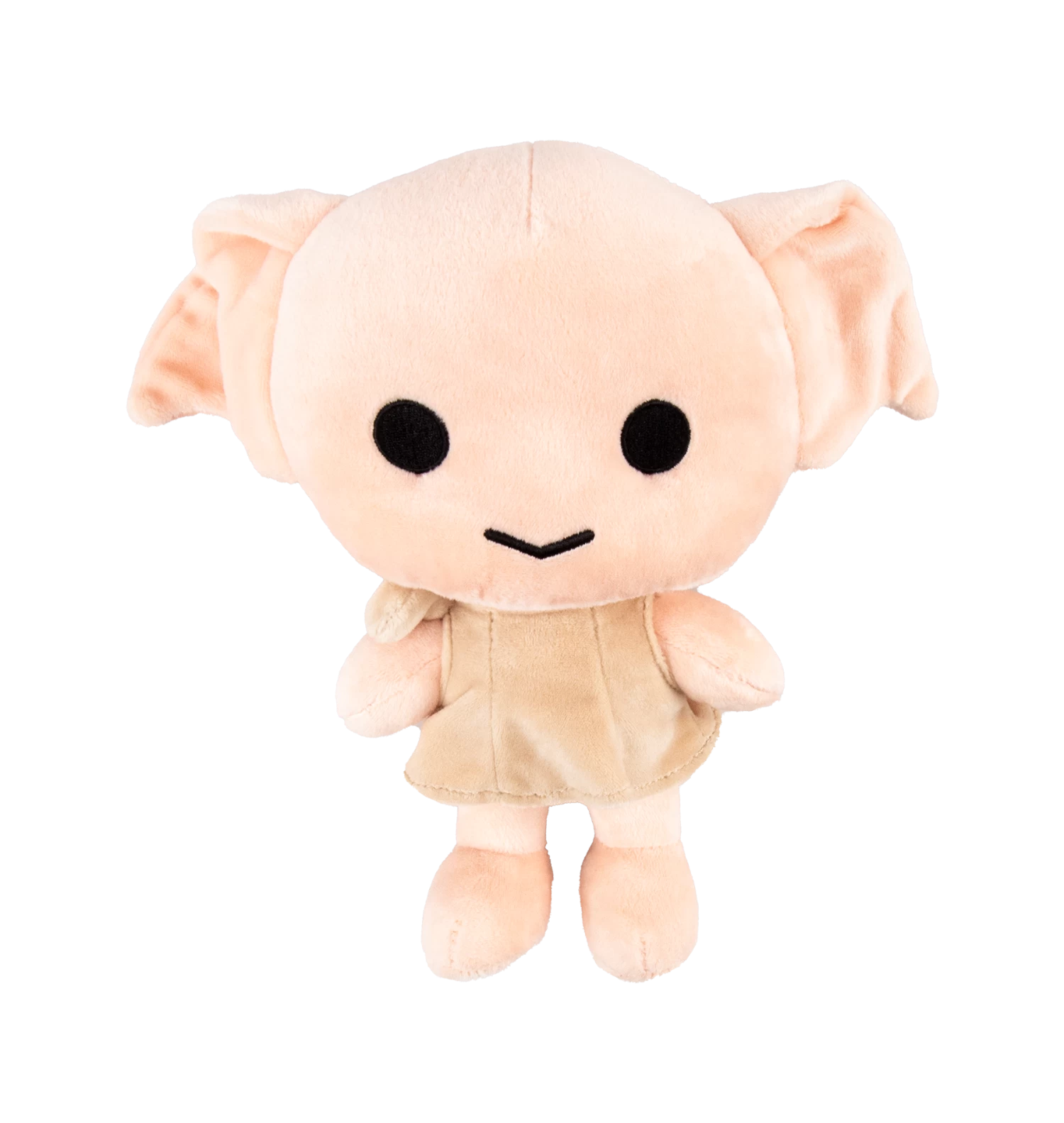 The small figure of Dobby comes complete wearing his tattered and worn pillow case tunic, made of a soft brown velvety material. He features super cute button-style eyes and floppy oversize ears in a cartoon style.