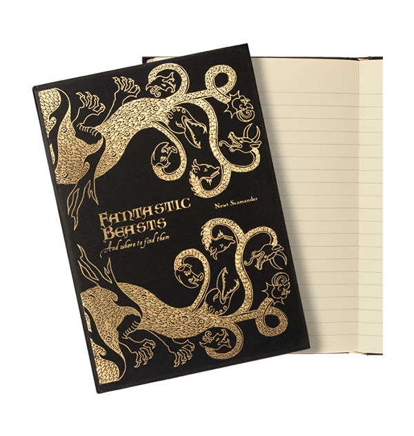 Fantastic Beasts & Where to Find Them Journal features black foiled cover details and is complete with luxury gold foiled edges. The journal contains approximately 200 lined pages and comes with a ribbon page marker to mark your place.