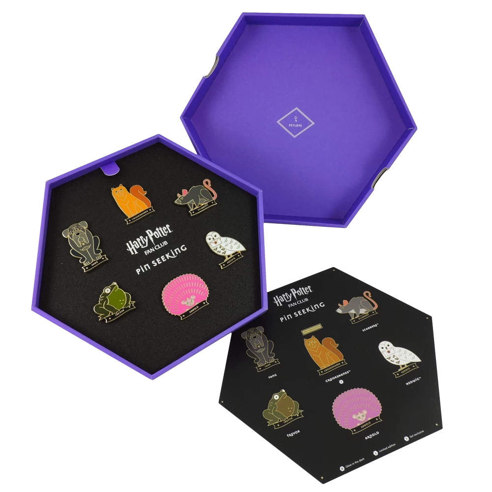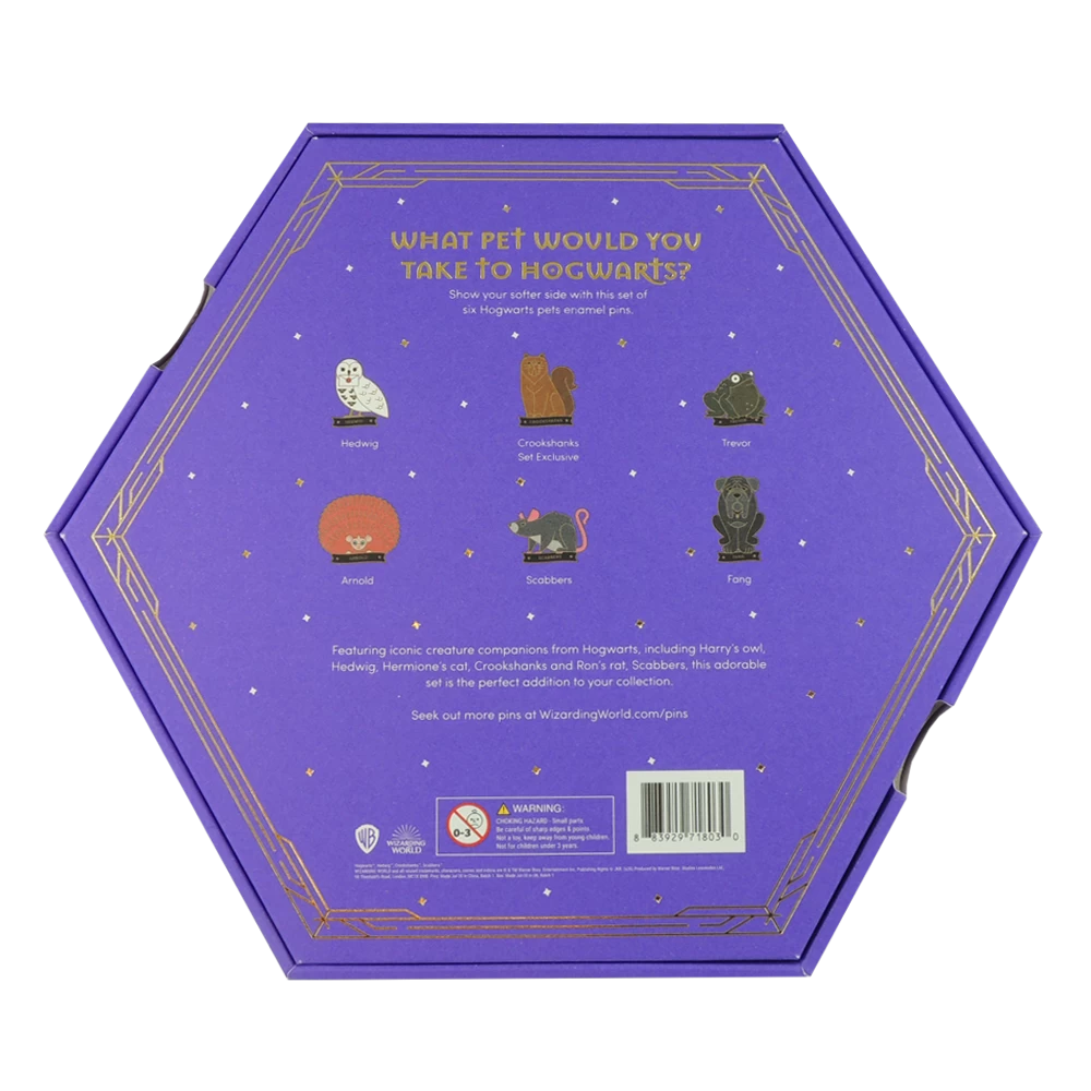 Which pet would you bring to your first year at Hogwarts? Now you can pick more than one, with this 6-pin set featuring Fang, Scabbers, Hedwig, Arnold, Trevor, and an exclusive pin available only when you purchase this set – Crookshanks!