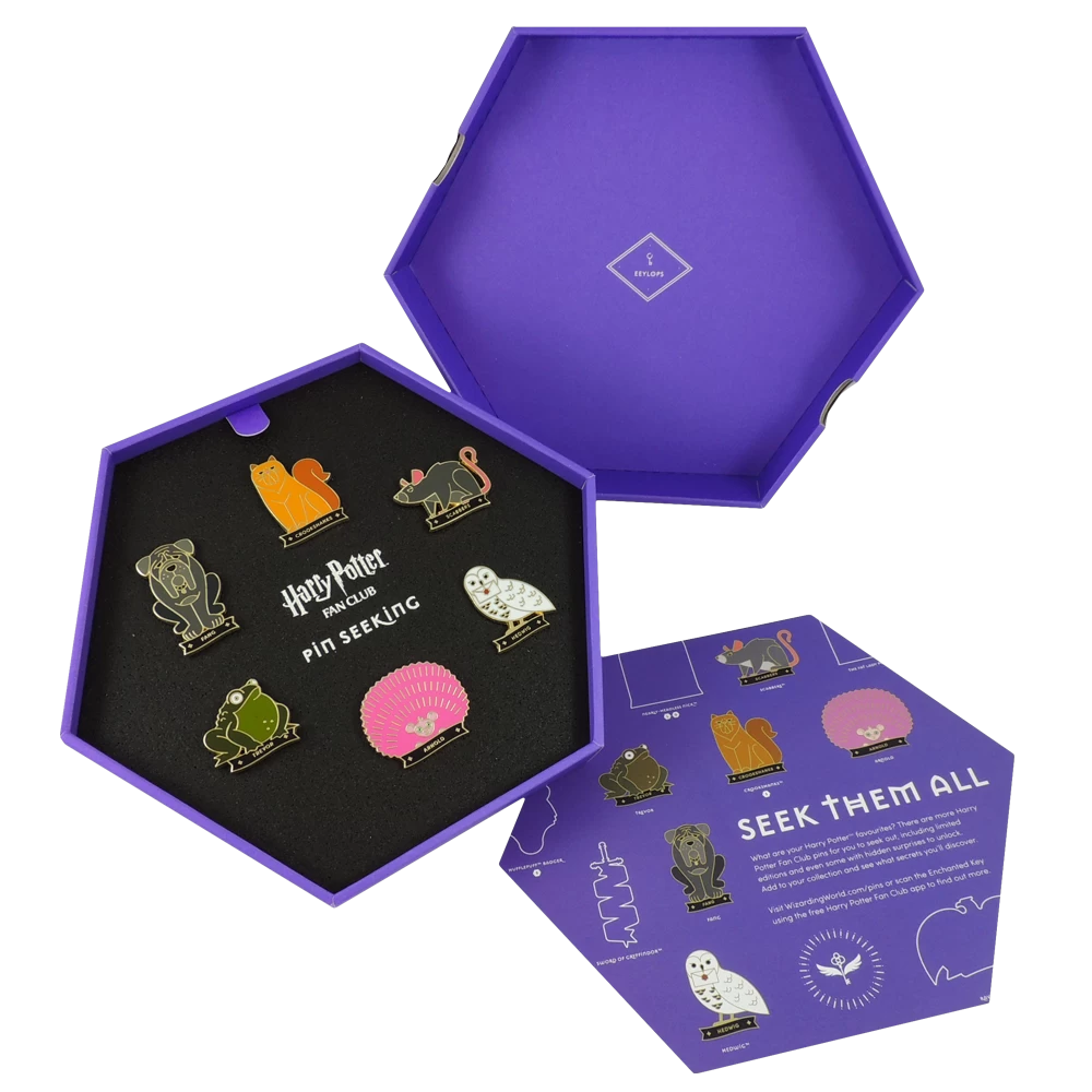 Each pin is finely detailed, making it the perfect addition to your collection. This 6-pin set is part of the Harry Potter Fan Club Pin Seeking range and features a rare pin that can only be obtained as part of this set. The box is fitted with magnets so you can connect your box with other box sets as you grow your pin collection! Look out for the scannable Enchanted Key too, that unlocks a surprise with the Wizarding World app*.