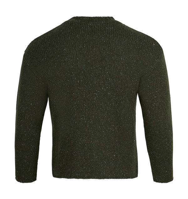 The jumper features a bold initial ‘G’ knitted into the front on a green coloured material.