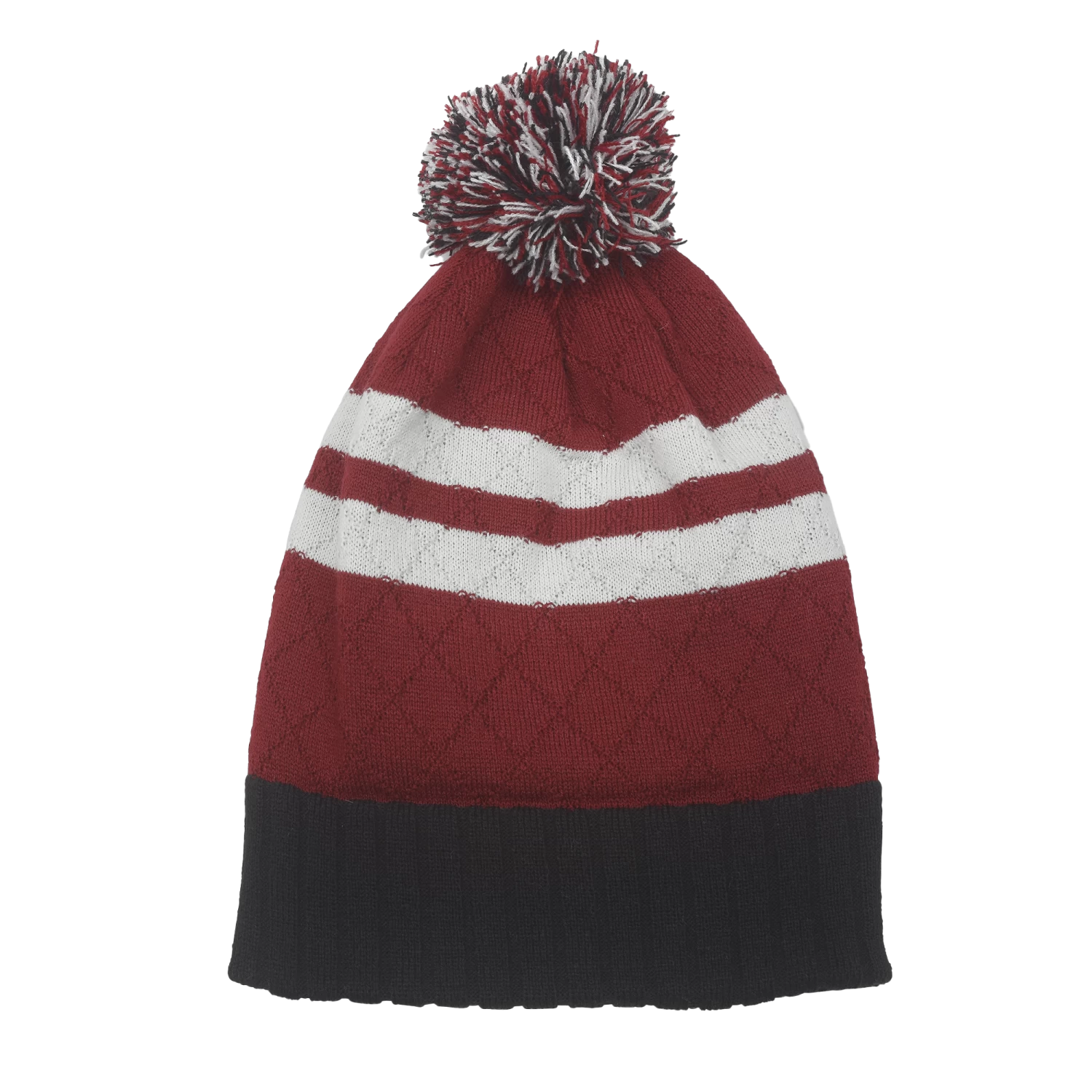 Show off your house pride and keep warm with this Gryffindor bobble hat. The hat comes in a deep red, the traditional colour of Gryffindor house and features two white stripes.