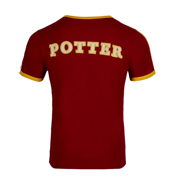 Celebrate your house pride with this athletic Harry Potter Seeker Jersey. The t-shirt has been designed with scarlet red and yellow colouring, representing the traditional colours of the Gryffindor house. The t-shirt is complete with the number ‘07’ printed on the front in gold applique, and the name ‘Potter’ on the reverse. Â