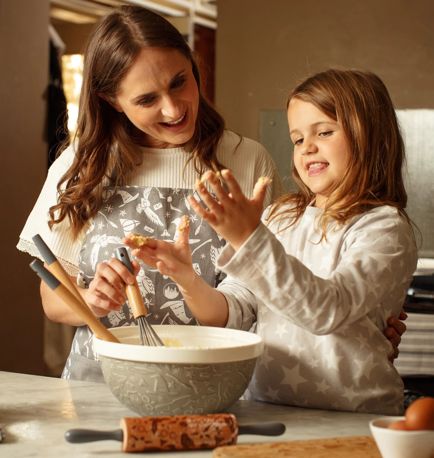 Experience the enchantment of Harry Potter in every dish with the Hogwarts kitchenware collection. This charming 100% cotton apron includes a large front pocket adorned with a graphic print of Hedwig in flight, and is perfect for storing your baking utensils while you weave culinary Christmas magic!