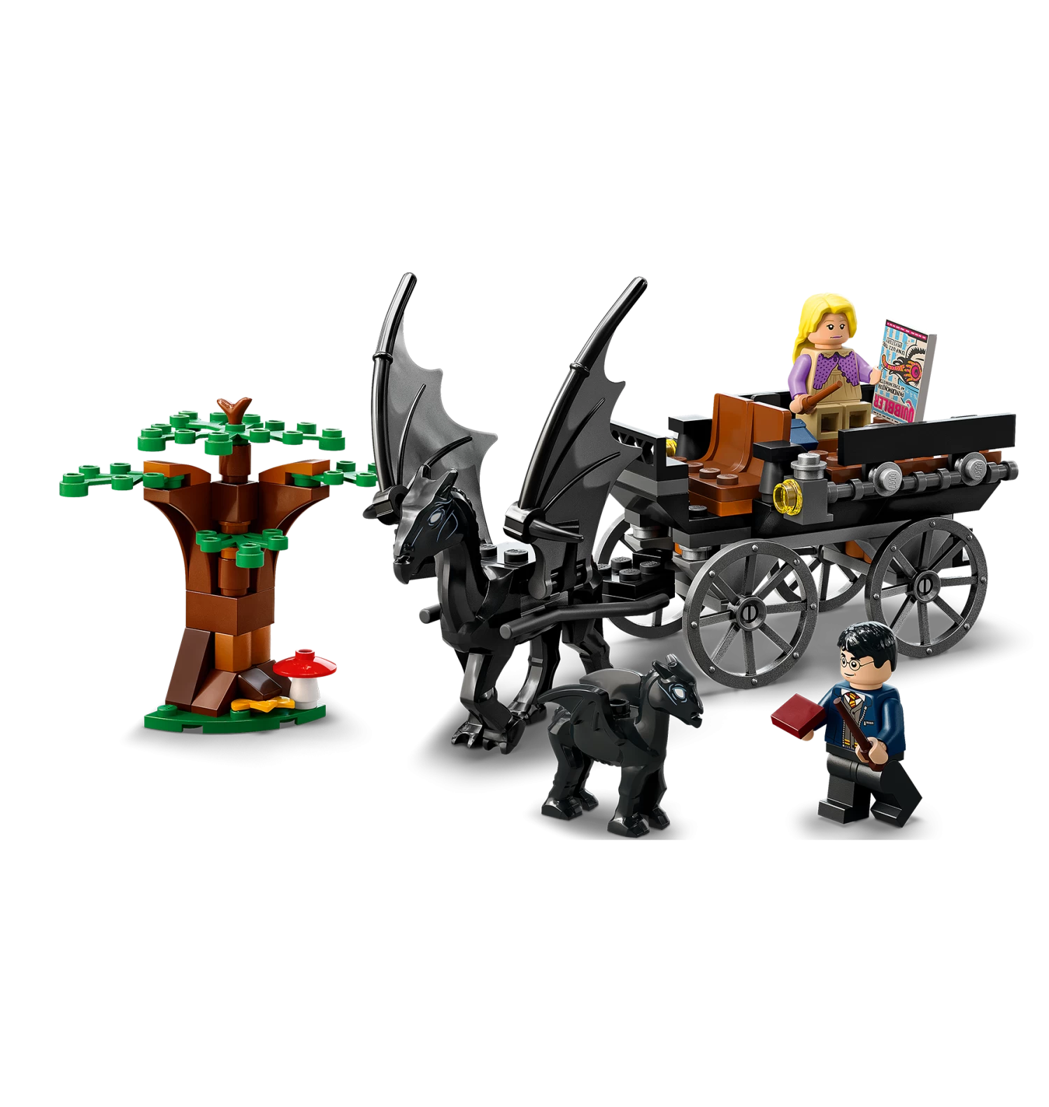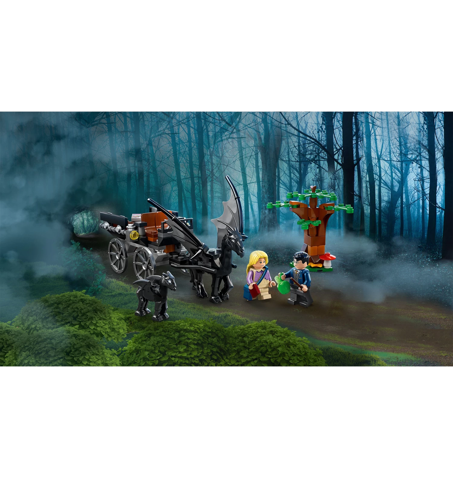 LEGO Harry Potter Hogwarts Carriage and Thestrals is a buildable toy for children aged 7 and up, with magical creatures to care for and carriage rides to enjoy for endless adventures.
