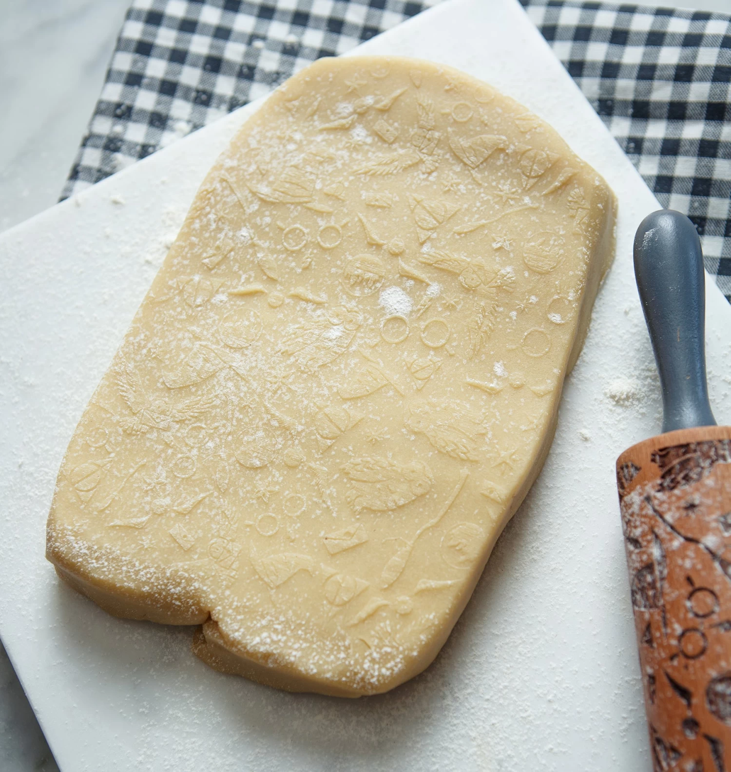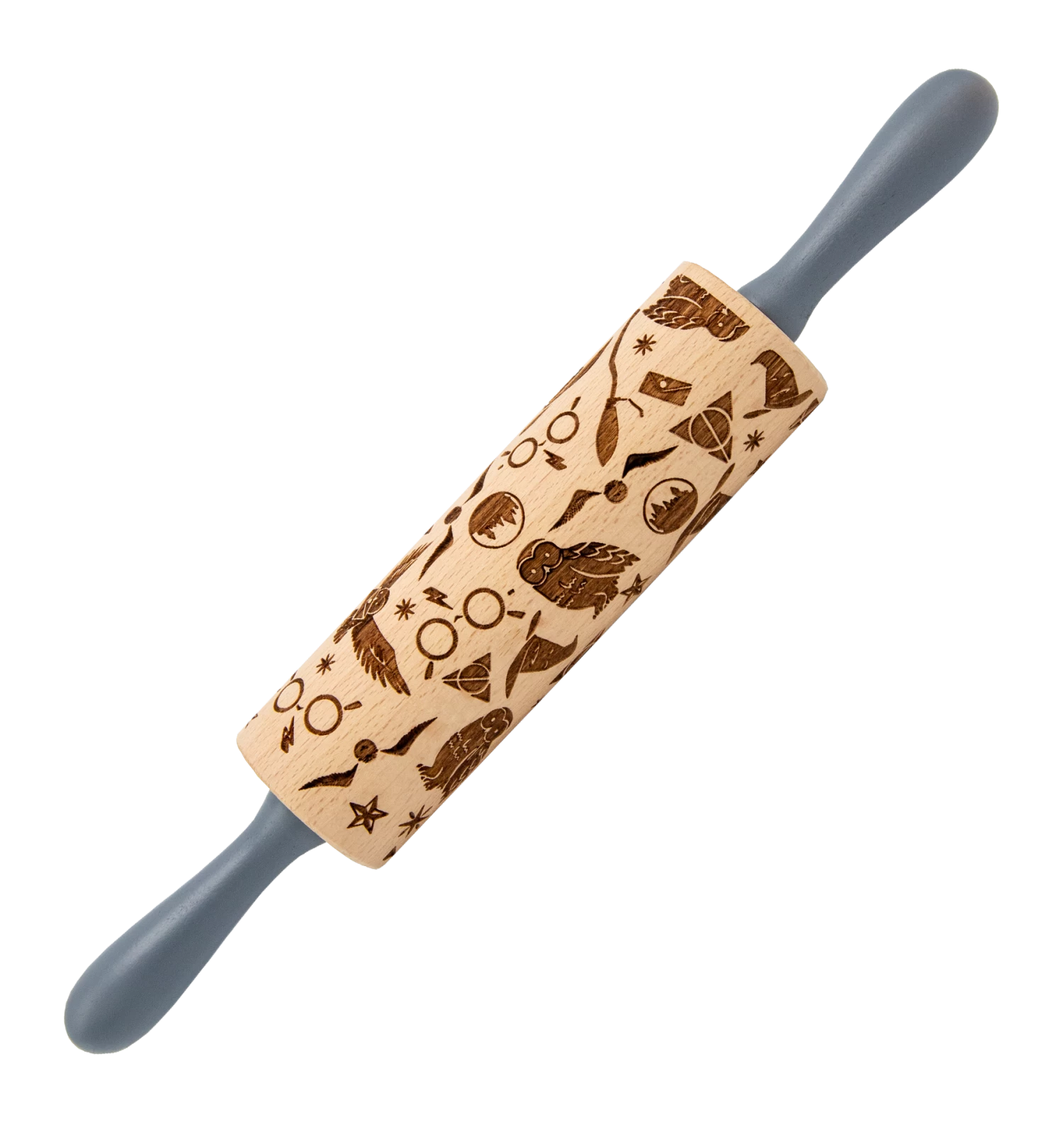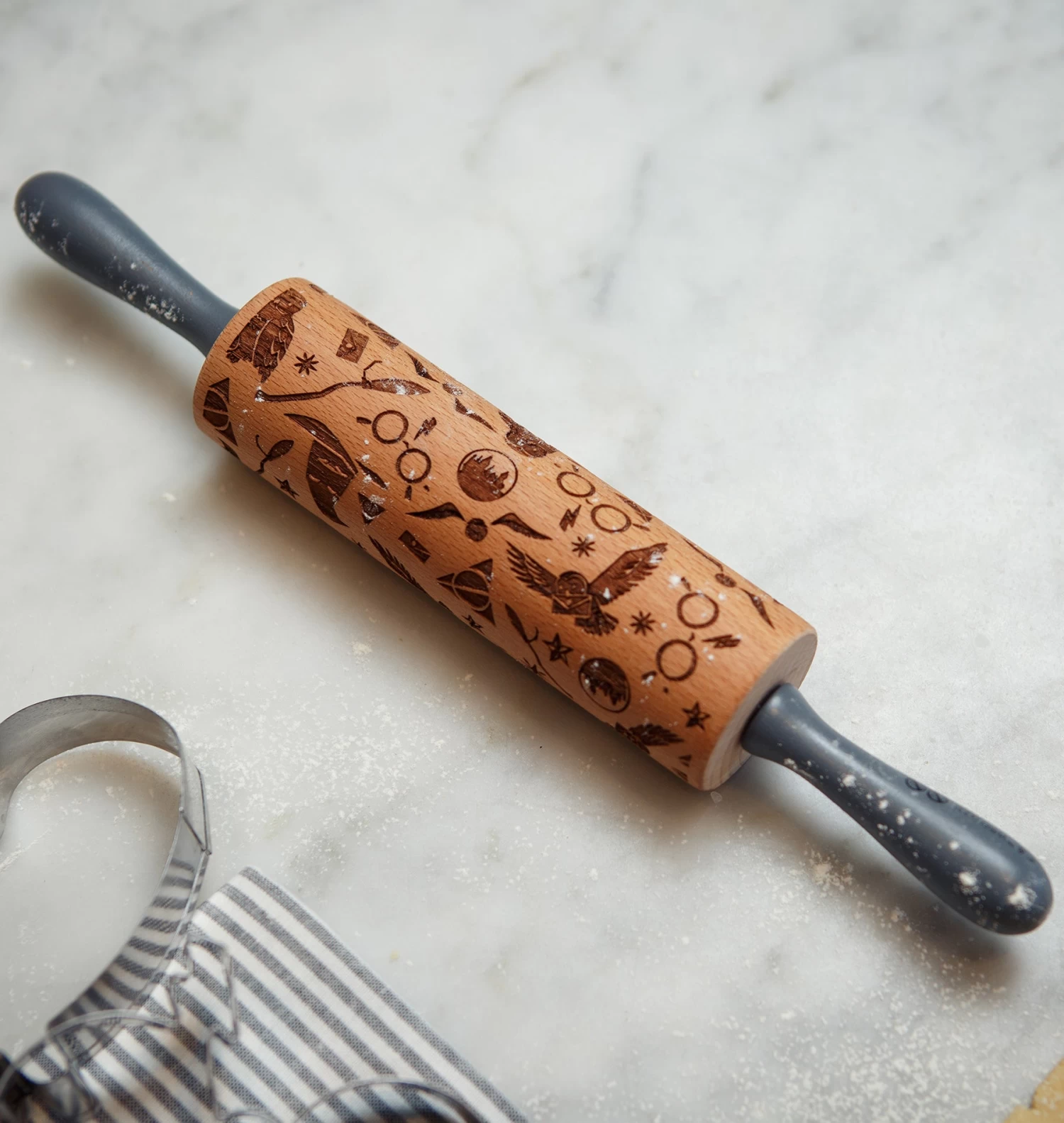 This mini rolling pin will help bring a bit of Hogwarts magic to your kitchen in the form of embossed pie crusts, cookies, or anything else that could use a decorative touch! A natural wooden roller and stone grey handles make up this charming embossing tool, featuring iconic Harry Potter imagery like the Golden Snitch, Acceptance Letters, and the symbol for the Deathly Hallows. Your treats will not only be spellbindingly delicious, but also visually captivating.Â
