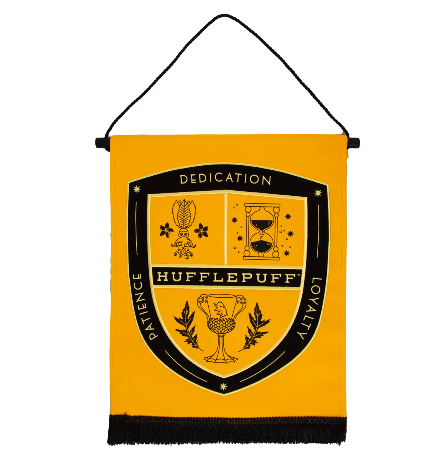 TheĀ design of this reinforced canvas banner is reminiscent of a heraldic crest on a shield, with the Hufflepuff house name proudly embroidered in large gold font in the center. The house traits are embroidered to each of the three crest edges, readingĀ Patience, Dedication and Loyalty. House symbolism is printed throughout.