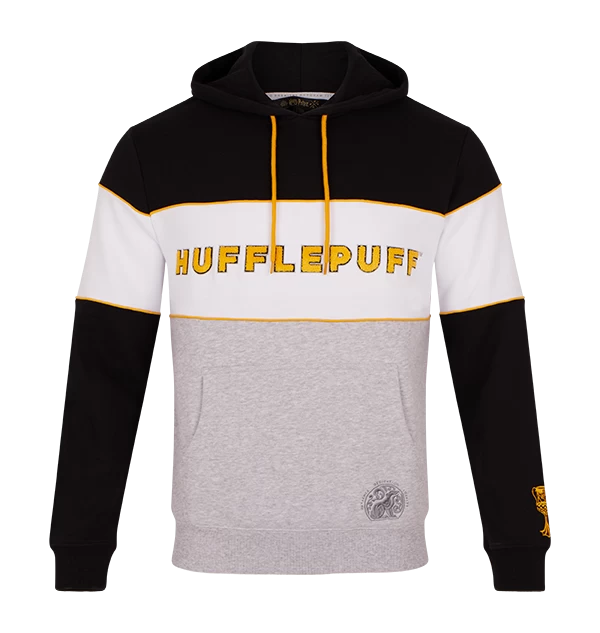 Get ready for the Sorting Hat ceremony with this bespoke Hufflepuff Hoodie. The hoodie features a colour block design in white, light grey, black and yellow, the traditional colours of Hufflepuff. The hoodie is complete with the text ‘Hufflepuff’ appliqued across the chest.