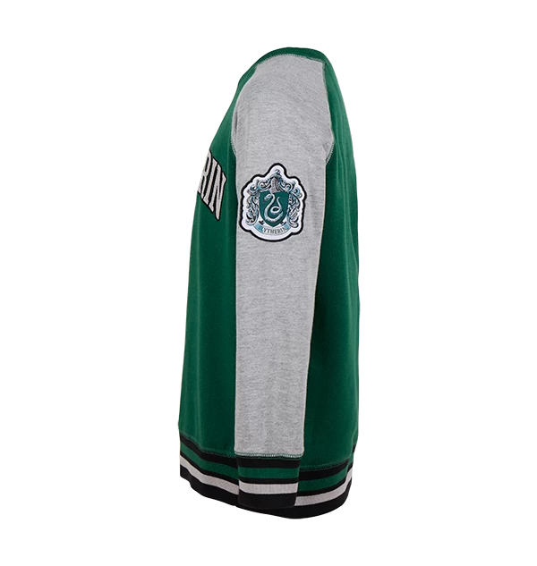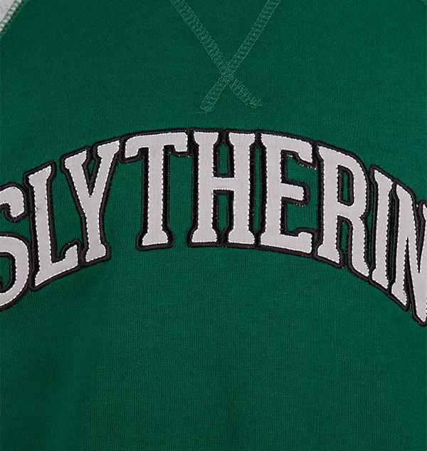 The sweatshirt is complete with grey sleeves and the Slytherin house logo. For a touch of house pride, you will also find the house name screen-printed across the jumper’s chest in grey.
