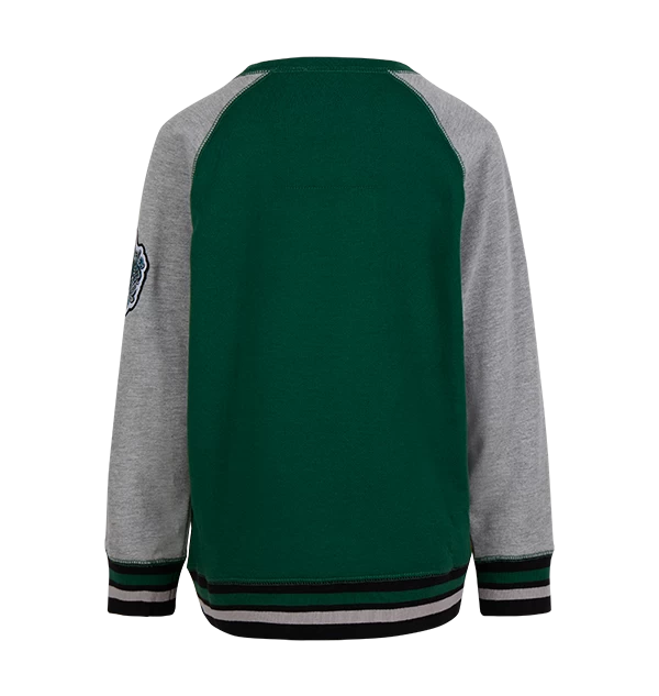 Add some magic to your little wizard or witches’ wardrobe with this unisex Slytherin sweatshirt. The sweatshirt features a raglan design with the body of the jumper in a emerald green colour, the traditional house colour of Slytherin.