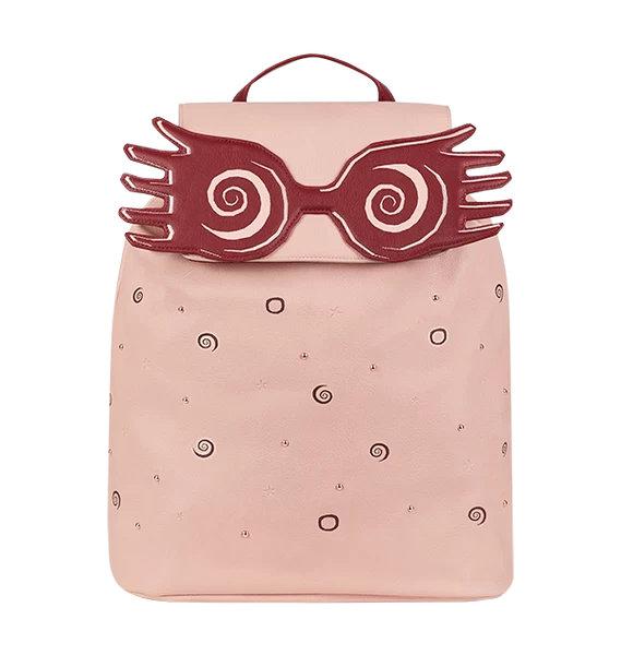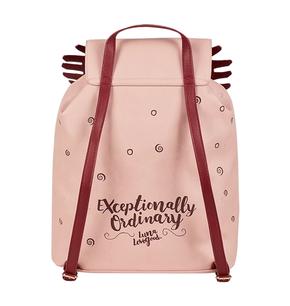 Head to school in style with this whimsical pink Luna Lovegood Rucksack. Inspired by Luna Lovegood’s quirky fashion sense, her trademark Spectrespecs glasses are featured prominently on the front alongside swirls, circles and rose gold studs. On the back, the phrase “Exceptionally Ordinary” can be seen, along with Luna’s iconic signature.
