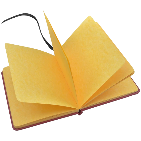 The journal has approximately 72 parchment-like textured sheets, dimensions 13cm W x 18 cm H x 1.5cm D.