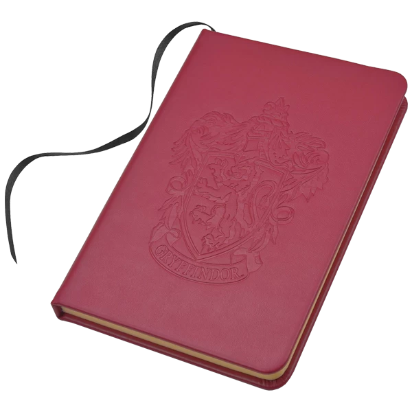 Celebrate your house pride with this bespoke journal. The journal comes in scarlet red, the traditional colour of the Gryffindor house, and features the iconic Gryffindor house crest embossed on a faux-leather cover. A black ribbon bookmark helps to keeps your place and the elastic closure keeps book securely closed.