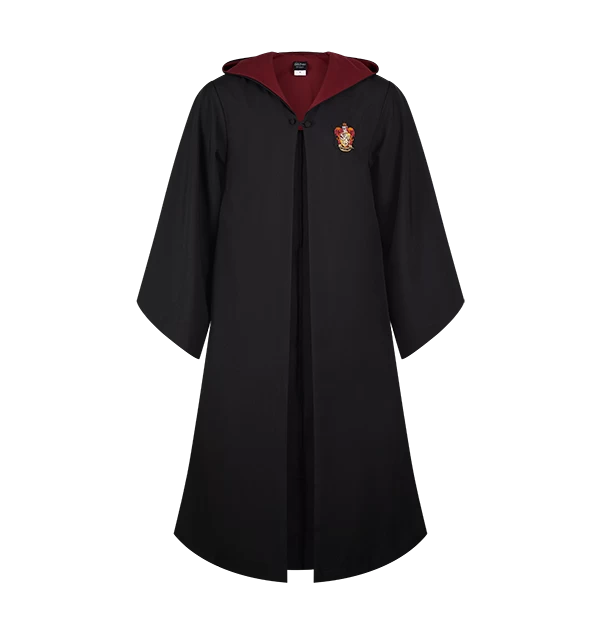 Celebrate your Hogwarts house pride with this replica Gryffindor robe, as seen in the Harry Potter film series. The Gryffindor robe features contrasting scarlet lining, pockets (there’s even a hidden pocket for your wand!), and embroidered Gryffindor crest.