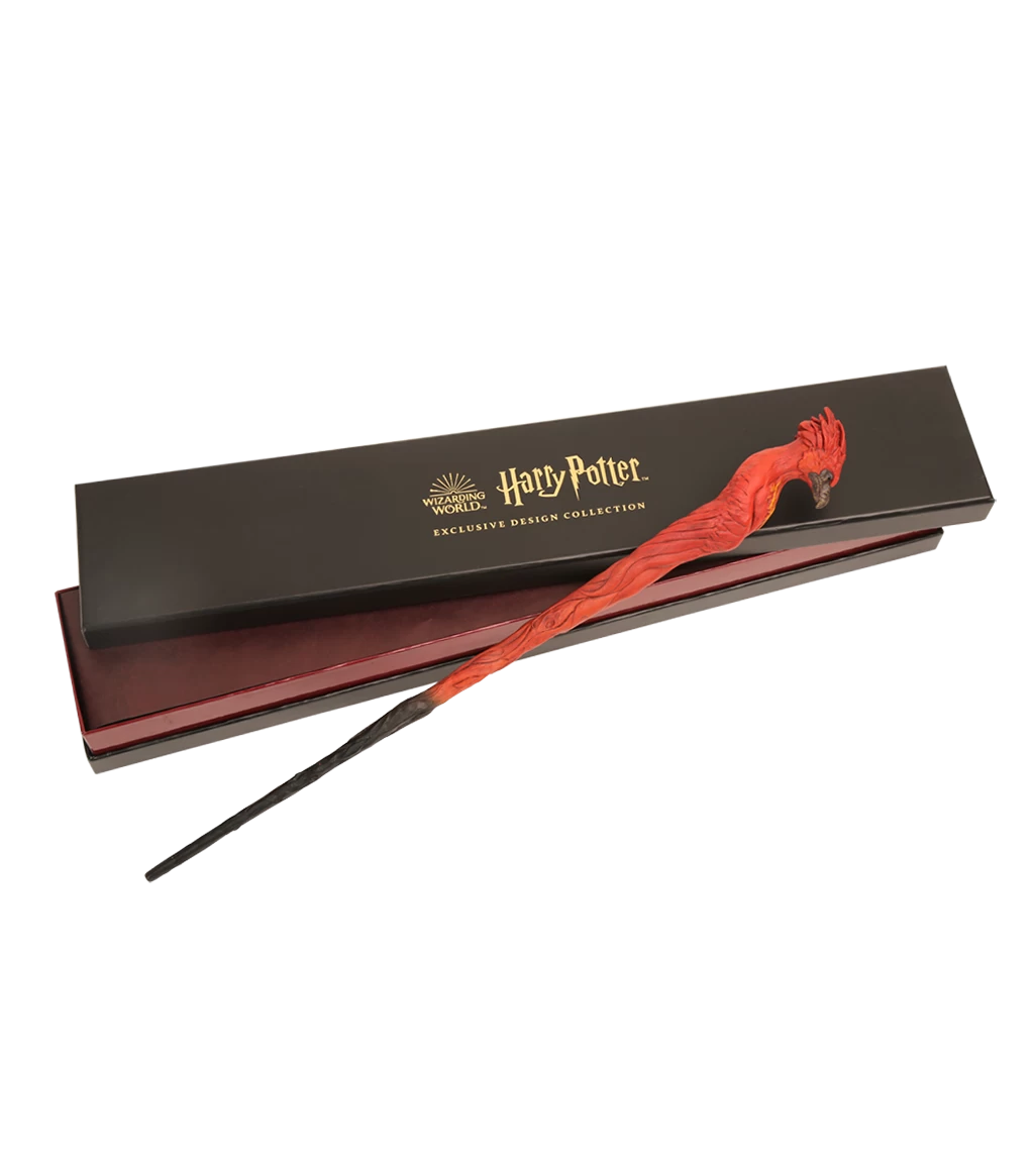This wand is inspired by the noble Phoenix, particularly the brave and loyal Fawkes. First seen on screen in Harry Potter and the Chamber of Secrets, Fawkes resides in Albus Dumbledore office as an ever loyal companion to the headmaster.Â