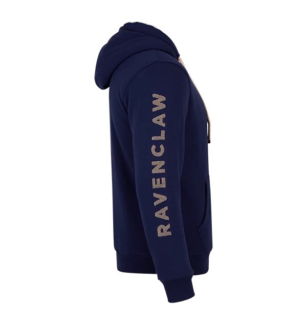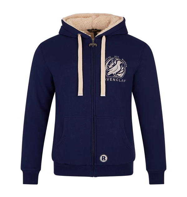 Refresh your wardrobe with this unisex Ravenclaw fleece hoodie. The navy-blue hoodie features a white eagle embroidered into the right-hand side of the chest. The hoodie is complete with the Ravenclaw house motto ‘Learning’, ‘Wit’ and ‘Wisdom’ printed in white.