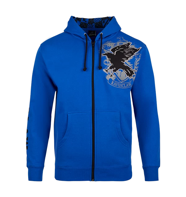 Add a dash of magic to your wardrobe with this unisex Ravenclaw sweatshirt. The blue hoodie features a black design of a raven, the traditional symbol of the Ravenclaw house, and is complete with the raven icon printed in the lining of the hood.