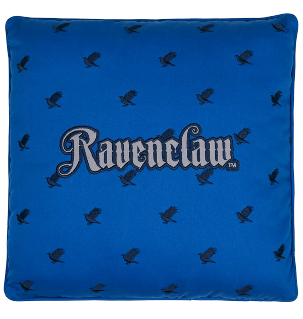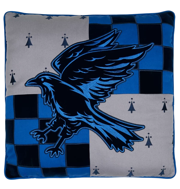 A large eagle, the iconic symbol of Ravenclaw, has been designed in the centre of the cushion with a blue and black colouring. The reverse features embroidered detailing and the Ravenclaw house name. The pillow contains a non-removable cushion pad.