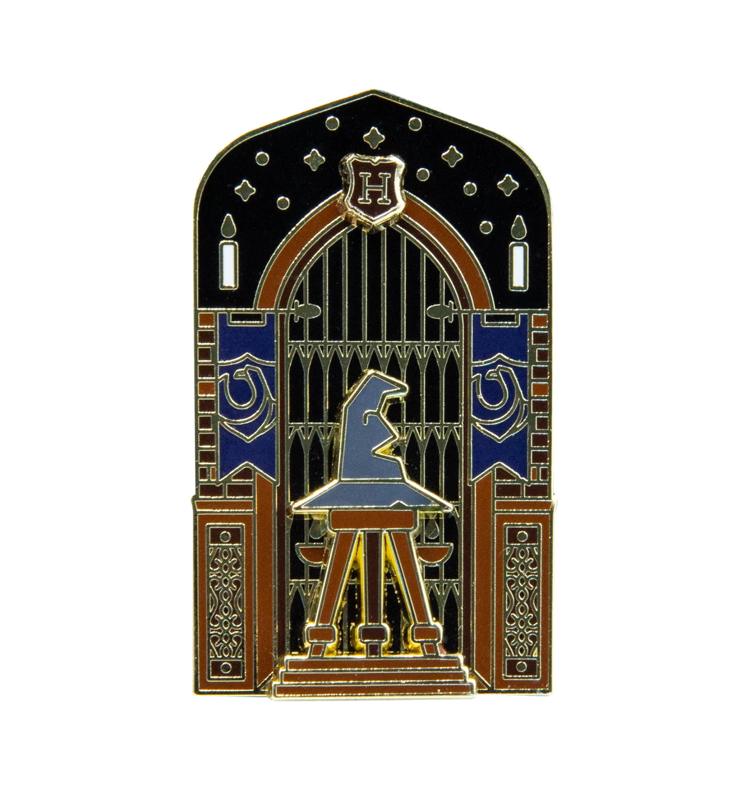 The Ravenclaw In The Great Hall Enamel Pin comes mounted on a themed backing card and will be sure to bring pride to your Harry Potter collection!