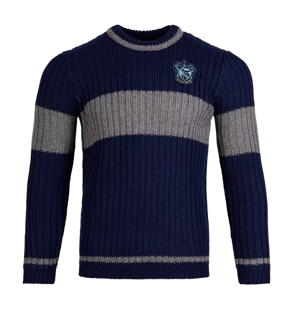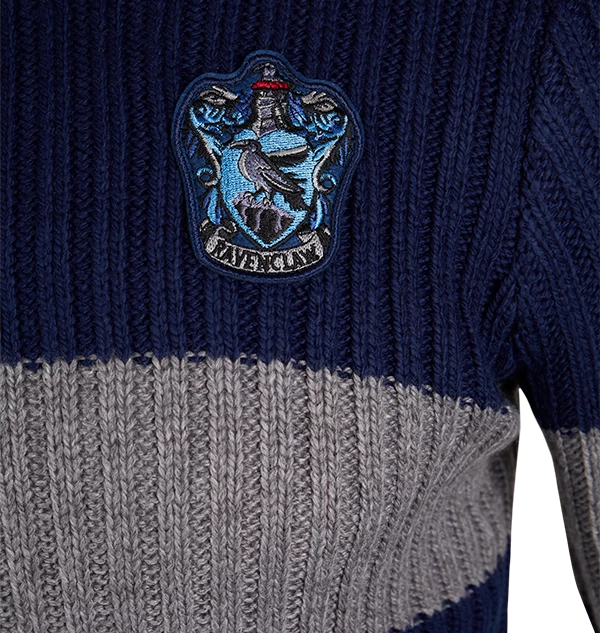 Cheer on your favourite Hogwarts house Quidditch team with this Ravenclaw Quidditch Jumper. Featuring an embroidered Ravenclaw house crest patch on the left chest and reproduced in the blue and silver colors of the house, this Quidditch jumper is a faithful celebration of the ones seen in the Harry Potter film series.