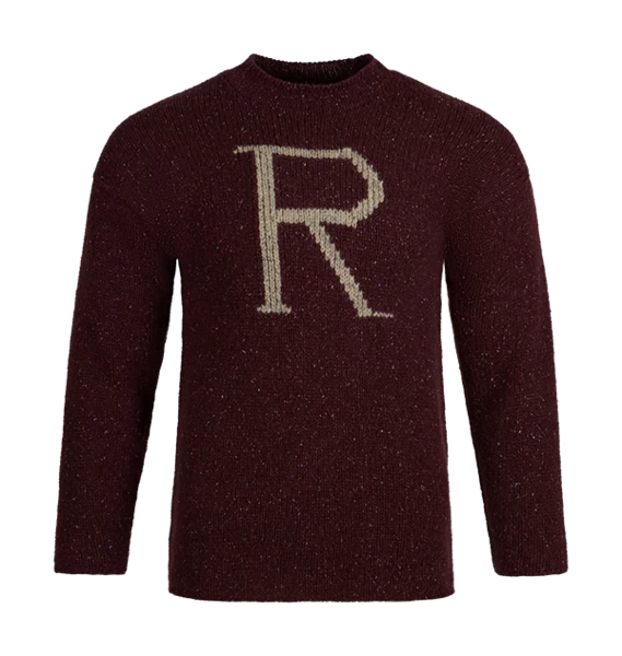 A replica of the ‘R’ jumper that Mrs. Weasley gives to Ron during Harry Potter and the Philosopher’s Stone. This chunky knit burgundy jumper features Ron’s letter ‘R’ on the front in a bold pale yellow font. It makes the perfect accessory for fancy dress, as a collectable, or as a cosy addition to any Harry Potter fan’s wardrobe!