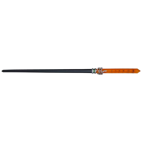 A wand inspired by the Slytherin Locket artefact, with an octagonal handle like the eight-sided locket. The wand is embellished with etched runes and includes an emerald-like stone, evocative of the locket’s decorative features. A proud Slytherin who seeks artefacts from the House’s past will not resist this wand.
