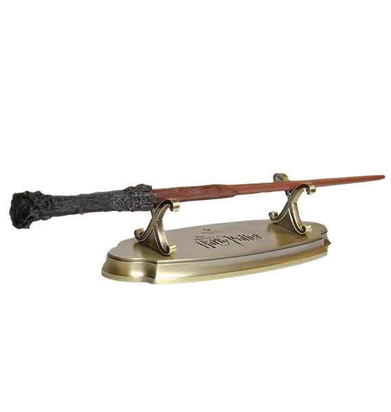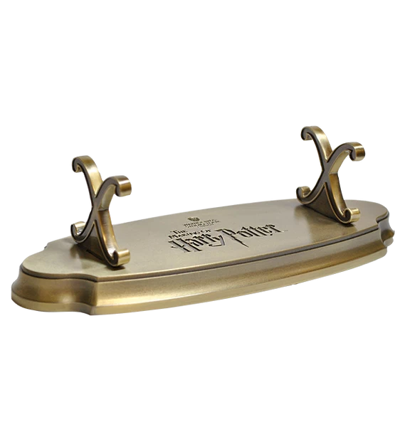 Keep your favourite wand on display and show off your school pride with this unique wand stand, the perfect way to exhibit your collectable wand. This metal Harry Potter wand stand is embossed with the logo of the Warner Bros. Studio Tour London in the centre of the stand and is a great way to present your bespoke Harry Potter wand anywhere around your home. The stand has been designed with a gold finish and measures approximately 22x8x6cm. Please note collectable wands are sold separately.